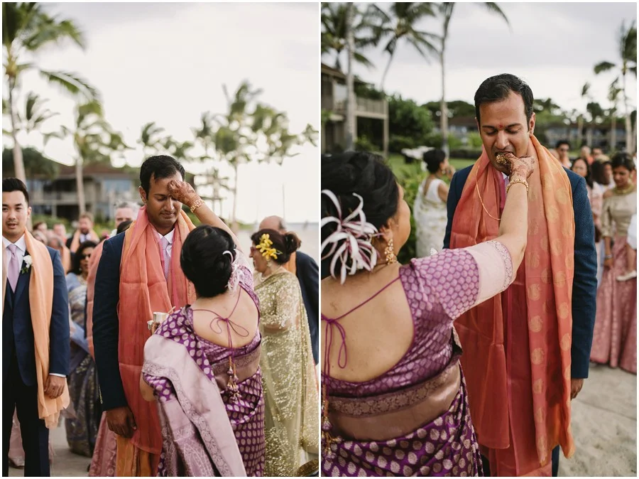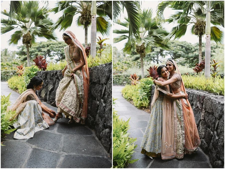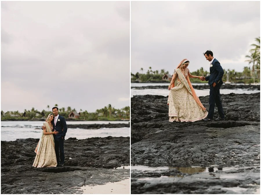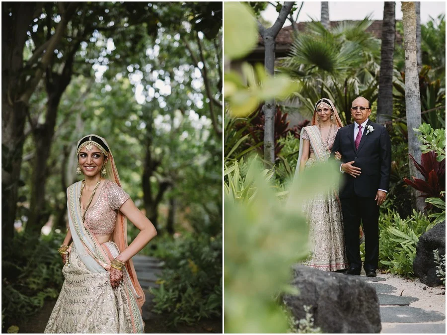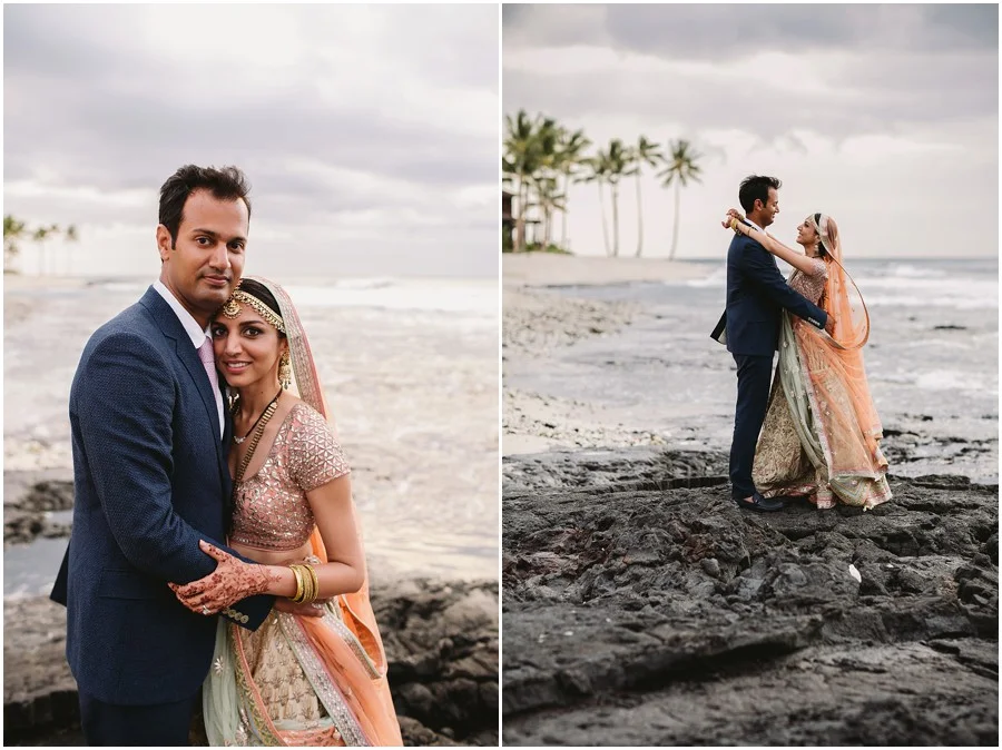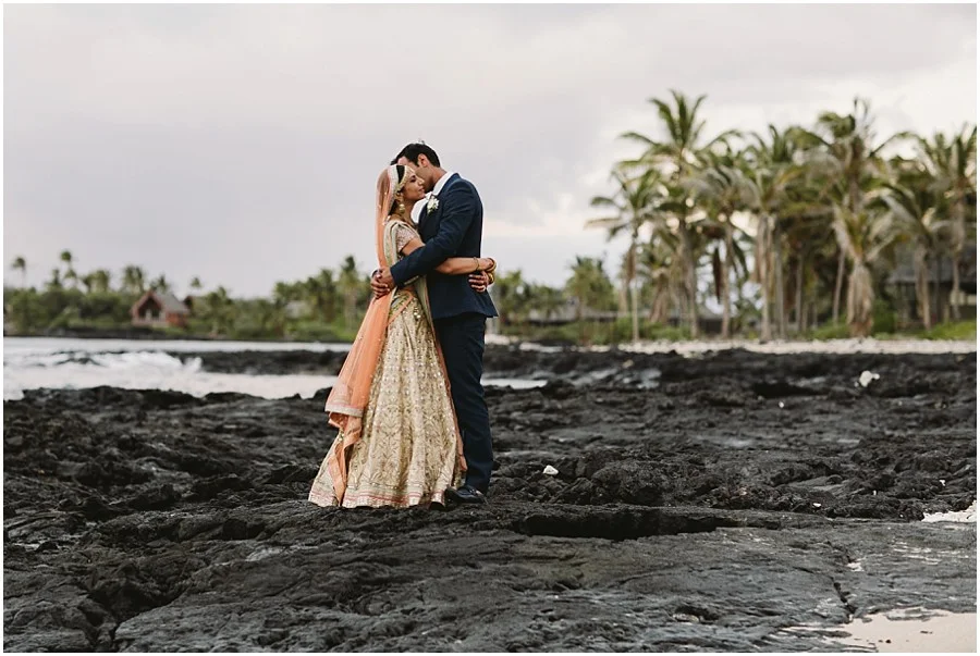 In my early 20s I spent three months in Nepal and India and since then I have always been obsessed with that part of the world. I absolutely love the people, their culture and food. Recently I had the privilege of photographing the first Indian wedding at Hualalai Four Seasons. It was a three day celebration full of beautiful traditions, music, dancing and so much love. The dinner the night before the wedding was very traditional. Everyone dressed in full Indian attire, there was Bollywood style performances and they had every type of curry dish you could imagine. There was even a henna station for all of their guests to enjoy! Shruti and Vikram live in the U.S. and wanted their wedding day to incorporate some American traditions as well. I think they did an amazing job of balancing old tradition with new! It was an absolutely beautiful day, one I won't forget!
